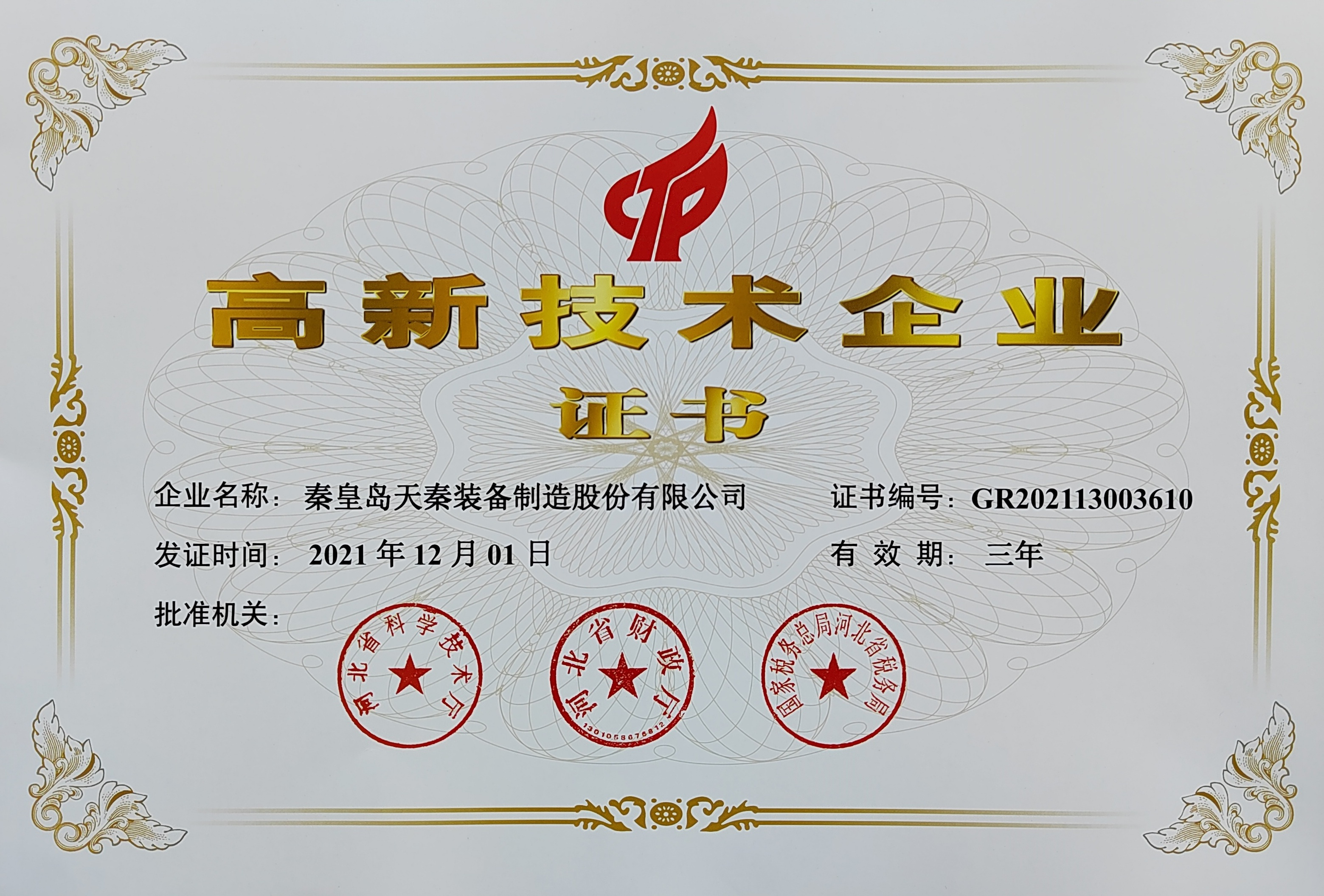 • 秦皇島天秦裝備制造股份有限公司創立于1996年,總部位于河北省秦皇島市經濟技術開發區,秦皇島廠區占地4萬平方米,擁有3萬平方米的標準廠房、辦公樓和工程技術研發中心;分部天津廠區位于天津市靜海經濟開發區,占地2萬平方米,擁有1.6萬平方米標準廠房。 公司通過了GB/T 19001質量管理體系及GB/T 24001環境管理體系認證,是國家高新技術企業、河北省軍民融合產學研用創建基地,建有省級院士工作站。